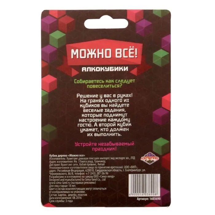 Купить кубик "можно все", алкокубики для принятия решений от 60 руб. с доставкой до пункта выдачи в Облучье. Интернет магазин ДекаМаркет. Оплата при получении.